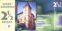 Im Jahr 2005 erschien anlässlich der damals gerade ins Leben gerufenen Langen Tafel der ZELLER, die damals neue Regionalwährung von Zell. Die Initiative wurde inzwischen eingestellt, war jedoch ein beliebter Werbegag für Handel und Gastronomie in der Stadt.