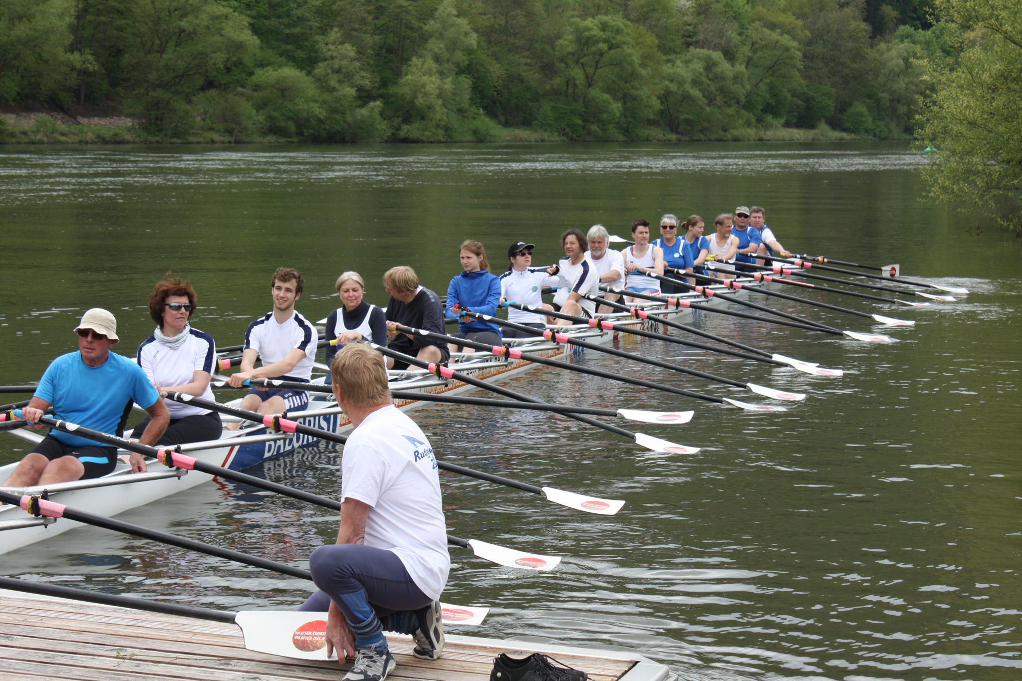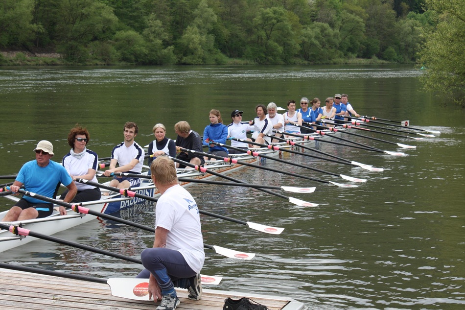 24 Ruderinnen und Ruderer mit Steuermann in einem 42 Meter langen Boot auf der Mosel! Die Schweizer Bootswerft Stämpfli hat das weltweit einmalige Ruderboot für 24 Ruderer konstruiert: den Stämpfli Express. Mitglieder des Rudervereins Zell (Mosel) e.V. 1921 durften das Riesenboot am 2. Mai besetzen und gaben ein imposantes Bild auf der Mosel ab.